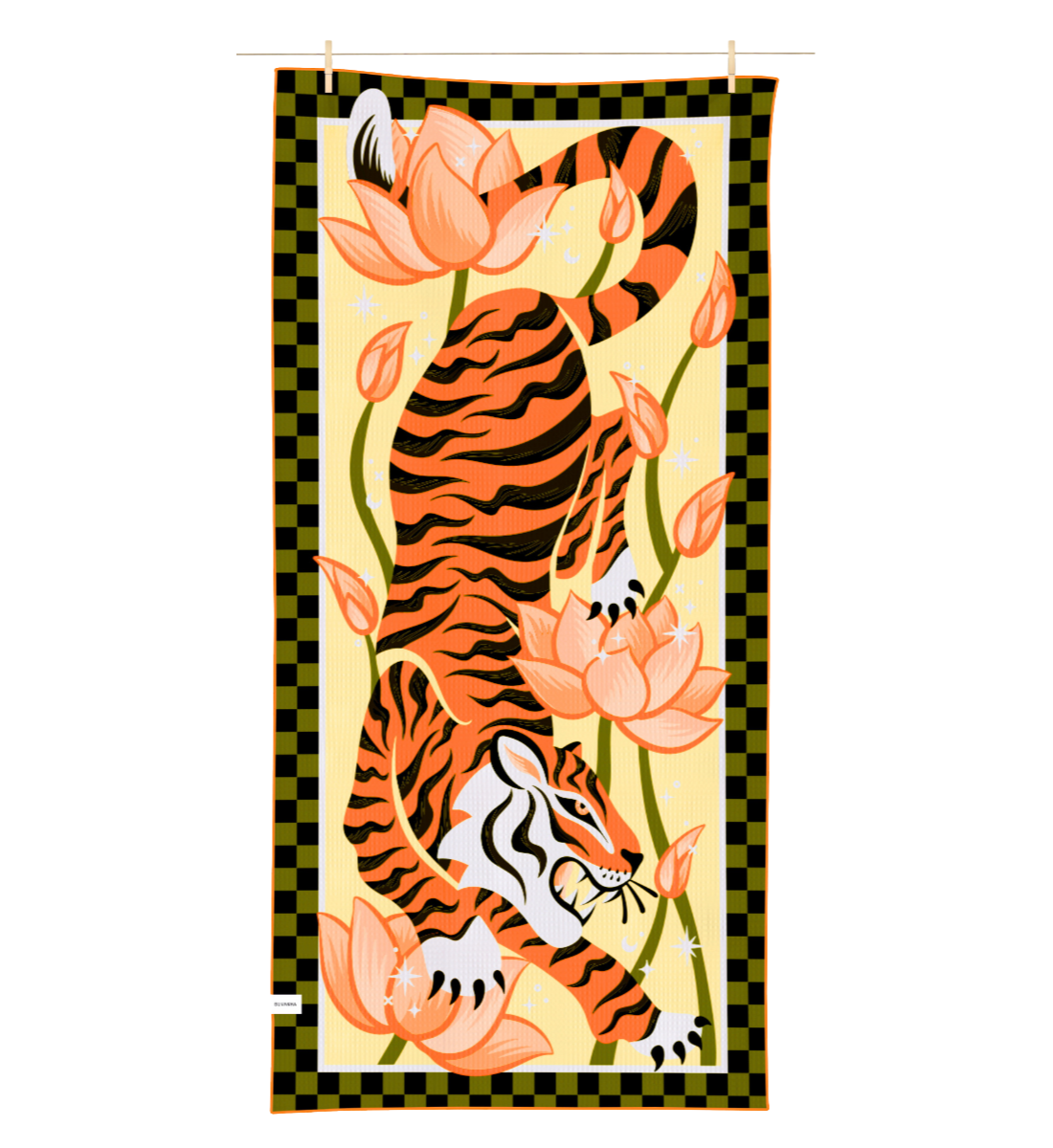 Cat’s reis begon bijna tien jaar geleden, toen ze spontaan een enkeltje naar Thailand boekte – een beslissing die haar leven volledig veranderde. Sindsdien reist ze de wereld rond als fulltime kunstenares, maar Thailand blijft haar meest geliefde bestemming. Er is iets magisch aan dit land dat haar steeds opnieuw terugroept. Het ontwerp combineert de krachtige uitstraling van de tijger – symbool voor moed en kracht – met de sierlijke lotusbloem, die staat voor gratie en veerkracht. Samen vormen ze een ode aan de unieke contrasten van Thailand: rauw en ongetemd, maar tegelijkertijd vol rust en harmonie.